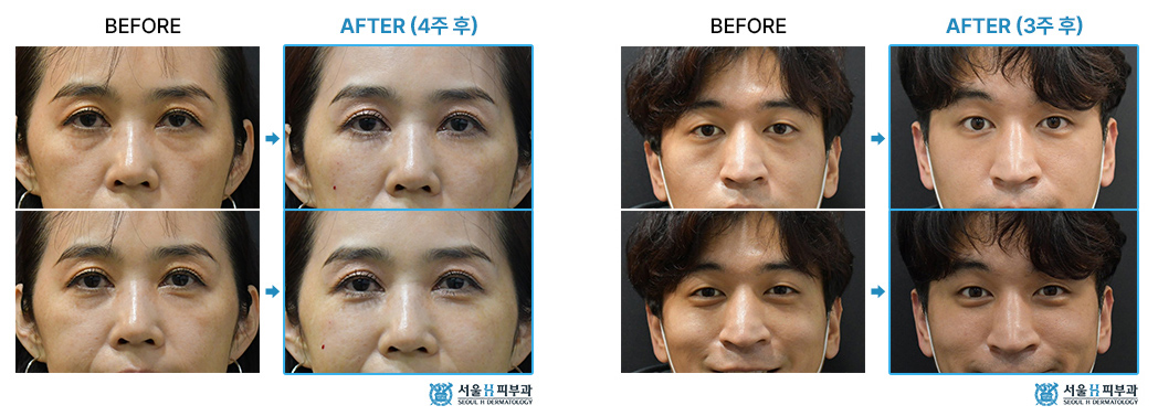 사람마다 눈 밑이 꺼진 형태가 다르고, 또 원하는 모양도 다릅니다. 서울에이치에서는 단순히 눈밑 꺼짐이 아니라 눈물고랑, 광대고랑, 앞광대, 인디언주름, 눈밑 전체 꺼짐 등 세세한 꺼짐을 우선 정확히 파악하고 시술합니다.